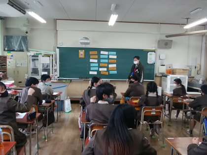 6年生に向け、進学する本庄中学校の先生が出前授業を行ってくれました。