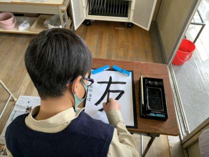 一人一人、自分が書きたい字を書きました。写真以外にも、「進」や「挑」などの字もありました!