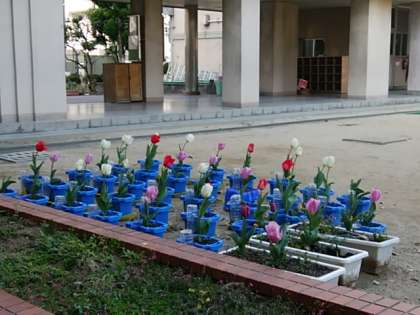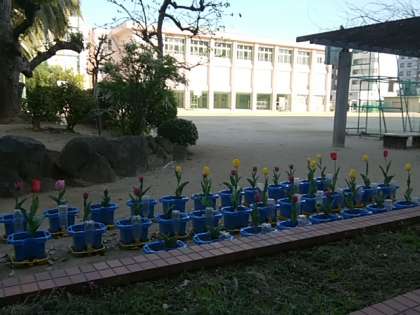 1年生のみんなが、がんばって育てていたチューリップが満開です!!