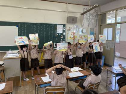 写真は2年生国語の授業の様子です。名前を見てちょうだいのお話を場面ごとに並べています!