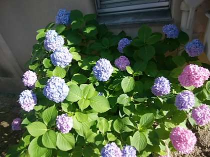 今日で5月も終わりです。学校にはキレイなアジサイが咲いています。