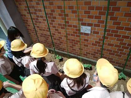 真ん中は4年生、理科の授業の様子です。ヘチマの苗を観察しましたよ。