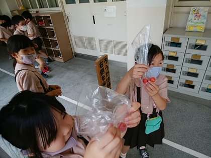 下の写真は2年生のミニトマトの写真です!とてもおいしそうに育っていましたよ!
