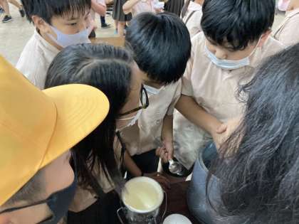 材料を入れて、氷水で冷やしながら30分位ゴロゴロ転がします!!