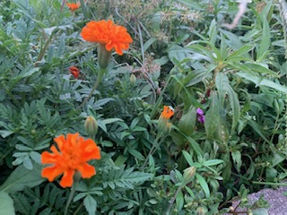 今日の写真は三年生の学習園のホウセンカとマリーゴールドです。