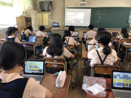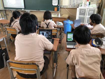 6年生、タブレットPCを使い今里小学校との交流授業を行いました!