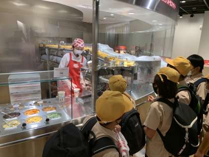 写真は5年生の遠足の様子です!カップヌードルミュージアムに行って、施設の見学、マイカップヌードル作りをしました。