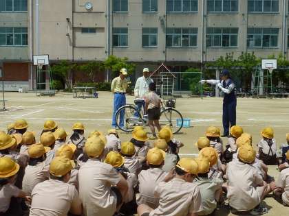 1、2年生は道路の歩き方を、3、5年生は自転車の通行について、様々な危険個所を想定して教えてくださいました。