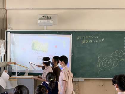 オリジナルタウンが完成し、町の案内を英語で行いました!