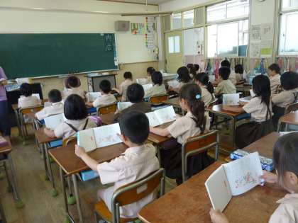 また、教室では、昨年そろえた詩集を使って、音読や暗唱をすすめています。昨年、取組を始めたころには、小さな声で恥ずかしそうに本を読む子が多かったのですが、今年はスタート時から、大きな声ではっきりと声を出して読む子が増えました。
