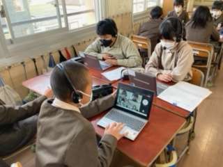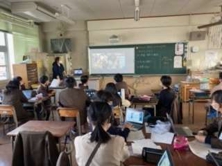 6年生、今里小学校との交流授業の様子です。両校の児童を混ぜて班を作り、共同で平和学習を進めています。今日は発表会に向けて、自分たちのP.Pのチェックを行いました!