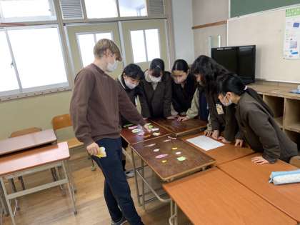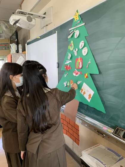 5年生英語活動です!みんなで英語でショッピング!クリスマスツリーに飾るアイテムを選び、オリジナルツリーを完成させました!