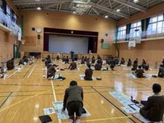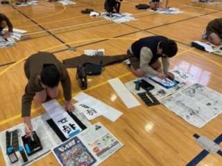 6年生、書き初めです!体育館で12組合同で行いました!さすが6年生、みんなすごい集中力で取り組んでいましたよ!!