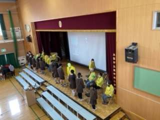 会場となった講堂には6年生のみの集合でしたが、teamsで他の学年の児童も参加し、最後には全員でお礼を言うことができました!!