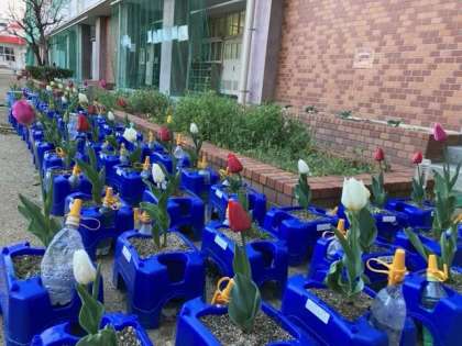 昨年度1年生が植えたチューリップがたくさん花を咲かせていましたよ!