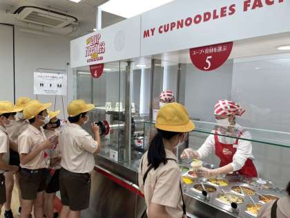 池田にあるカップヌードル博物館へ。スープなどオリジナルの具材などを選び、カップにイラストを描いて完成です!みんなとても良いお土産が出来ました!