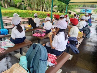 お弁当も屋根の下、行儀良く距離を取って食べることができていました!!