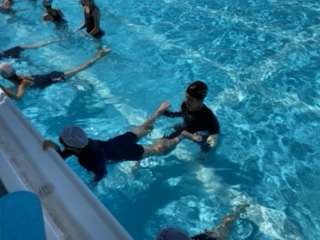 (上)四年生、区体力向上支援事業がありました。2年ぶりの水泳授業になった四年生ですが、体育支援の先生が来てくださり、水慣れからクロールの泳ぎ方まで教えていただきました!