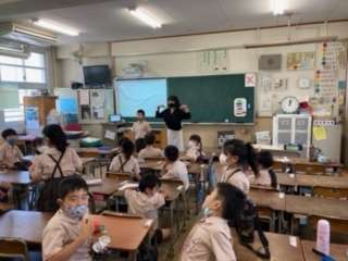 (下)本日、昨年度から英語活動でお世話になっていたニコル先生の最後の授業の日でした。今まで、主に低学年の英語活動をいつも楽しく教えていただいていたので、とても残念です。ニコル先生、今まで大変お世話になりました!!