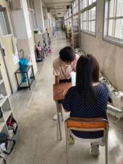 今日はALTのハレン先生が来てくださる日です!5・6年生はそれぞれ、ハレン先生と英語で話すテストを行いました。みんな緊張した様子でしたが、とてもがんばっていました!!