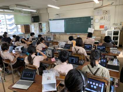 5年生、今里小学校との交流授業を行いました。