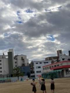 5年生理科の授業で雲の観察をしました!タブレットで空の様子を撮影し、10分後に同じ場所で撮影し、動きを比べました。今日は雲が多く、観察しやすそうでした。、