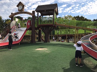 公園は大型遊具もあり、滑り台などみんな元気いっぱい楽しんでいましたよ!