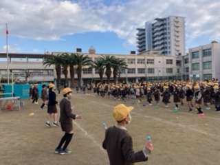 朝、運動委員会の集会活動がありました。3学期にはじまるなわとび集会の跳び方を、エアーなわとびで練習しました!