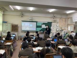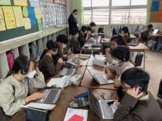 研究発表会では、他校の先生とteamsを繋ぎ、今まで行ってきた今里小学校との交流や、情報活用能力について発表しました。