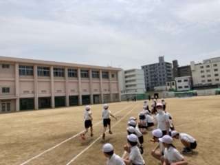 運動場に50mのラインが引かれていたので、今日の体育では、どの学年も50m走を行っていました。心地よい気候の中、みんな楽しそうに走っていました!
