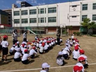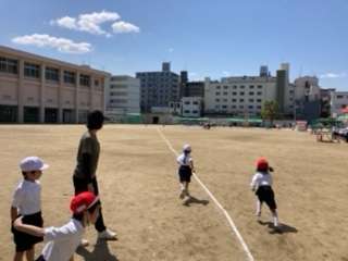 今日は連休前の最後の1日。一年生は合同体育で、運動場を元気に走っていました。