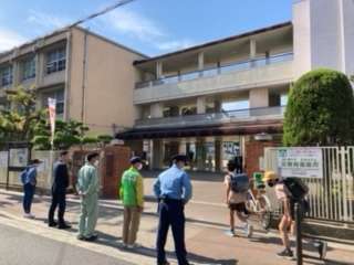 今朝は正門に警察官の方も来てくださり、子どもの登校を見守ってくださいました!