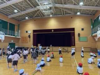 一年生の体育科の様子です。運動会の練習がはじまりそうな感じでした。暑い日が続いています。児童に水筒を持たせるようにしてください。