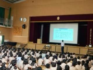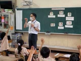 下の写真は一年生の栄養指導の様子です。みんなで、おいしく給食を食べるためにどうすれば良いか、分かりやすく教えていただきました!明日は五年生に来てくださいます!