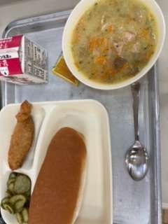本日の給食です。鮭のフライが人気で、どのクラスもおかわりの取り合いになっていました!