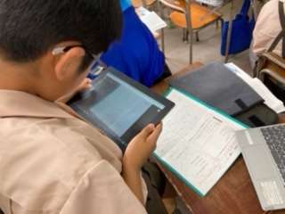 四年生、国語科の研究授業が行われました。「走れ」の単元で、主人公の気持ちの変化を考えました。みんなの意見をタブレット端末を使用し、共有しました。