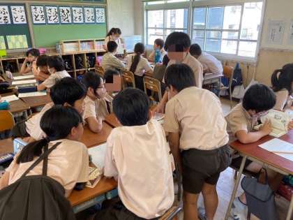 下の写真は、5年生国語科「ビブリオバトル」の様子です。今日は各班の代表になる一冊を選びました!明日は決勝戦で、各クラスの一冊を選びます!
