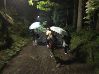 ナイトウォークを終え、就寝準備を行っています。