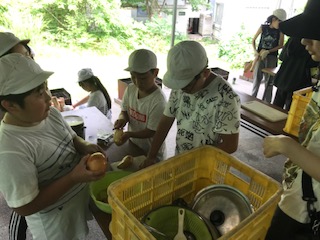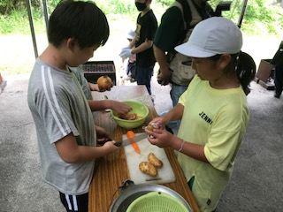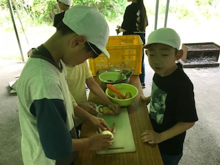 役割分担に従って、いざカレーづくり、飯盒炊飯!