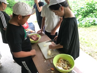 野菜の下準備も終え、火も安定した燃え方になってきました。