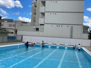 先生たちでプールの清掃を行いました。月曜日、一年生と二年生は水泳の授業があります。用意を忘れないようにしてくださいね!