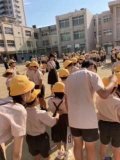 今日は児童集会のある水曜日。今日のゲームは「伝言ゲーム」背中に、数字を書いて伝え合いました!なかなか難しかったようで、成功した班はとても喜んでいましたよ。