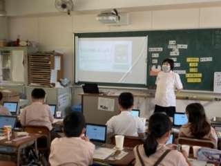 中の写真は、四年生「フッ化物塗布」の様子です。歯科衛生士さんをお招きし、大切な歯を強くするために必要なことを教わりました!授業では、タブレットも使用しました。
