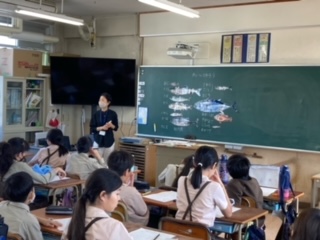 下の写真は、5年生栄養指導の様子です。魚を食べるとどんな良いことがあるのか、栄養士の先生に教わりました!これからも好き嫌いせず、給食を食べてくださいね。