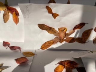 拾った落ち葉は、さっそく画用紙に思い思いの形に貼り付け、一つの作品に仕上げました!