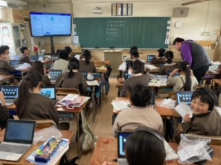 (中)五年生、今里小との交流の様子です。teamsを使って国語科の学習を行いました!どちらの学校の児童もタブレットを使いこなしていました!