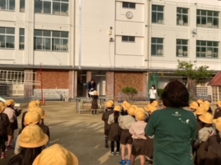 朝の朝会では、夏休みの図画作品のコンクールで佳作に選ばれた児童の表彰がありました。