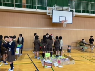 五年生、一、二組合同でお楽しみ会が行われました。子どもたちが色々なお店を出して、そこをみんなで周っていきます!
