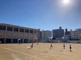 一年生、凧上げを行いました!風も強く、高く上げることができ、みんなとても喜んでいました。