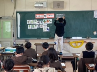 下は三年生、栄養指導の様子です。栄養士の先生から「食べ物の旬」について教わりました。ワークシートもがんばって書いていましたよ!